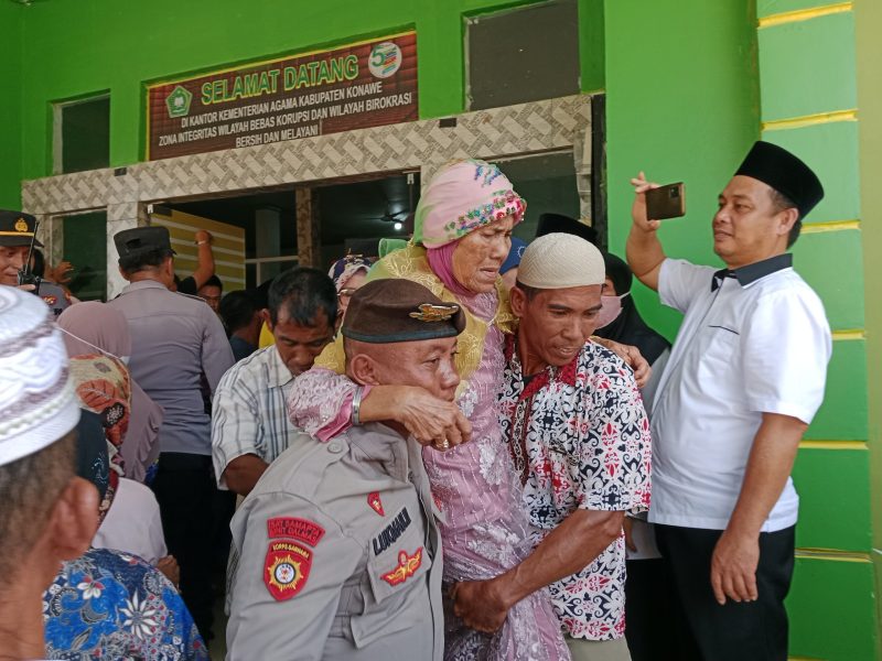 Begitupun saat jamaah haji tersebut keluar dari kantor Kemenag Konawe yang dipenuhi ratusan penjemput berdesak-desakan.