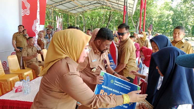Muarasultra.com, KONAWE – Pj Bupati Konawe, Stanley, secara simbolis menyerahkan bantuan sosial Pendidikan kepada 300 siswa-siswi sekolah Dasar (SD) dan sekolah menengah pertama (SMP) di Kabupaten Konawe.