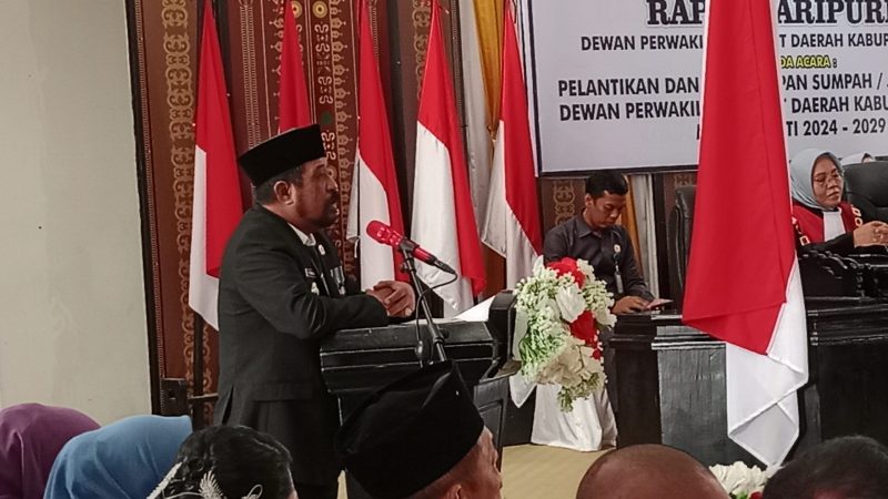 Hal itu diungkapkan saat sambutan di rapat paripurna DPRD Kabupaten Konawe dalam rangka pelantikan fan pengucapan sumpah Pimpinan DPRD Kabupaten Konawe pada Kamis (31/10/2024).