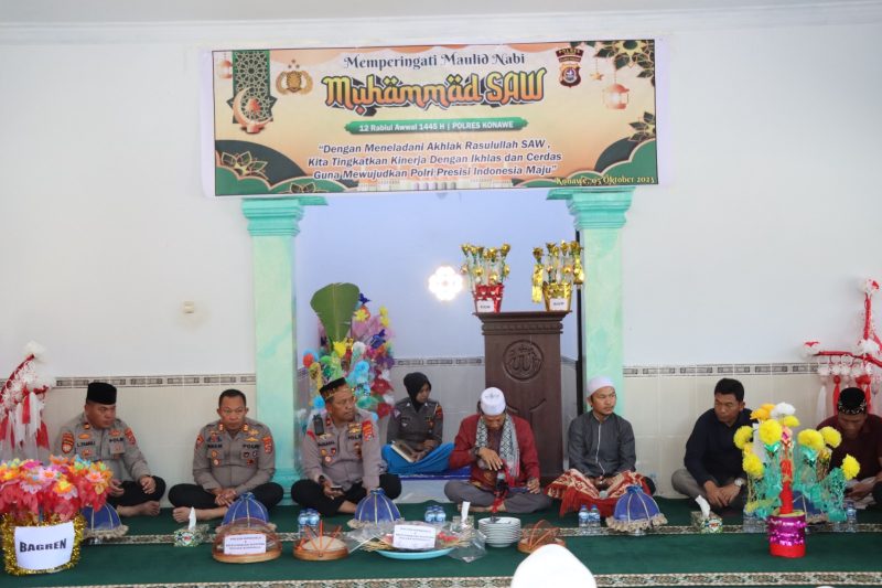 Kegiatan Peringatan Maulid Nabi Muhammad SAW, di Polres Konawe tahun ini mengangkat tema “Dengan meneladani Akhlak Rasulullah SAW, kita tingkatkan kinerja dengan ikhlas dan cerdas guna mewujudkan Polri Presisi Indonesia Maju”.