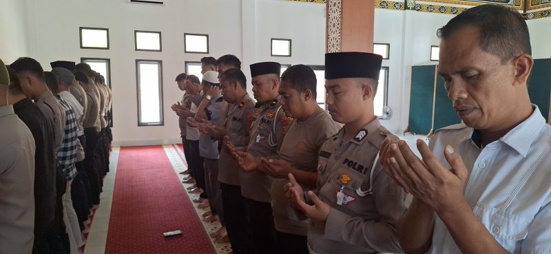 Muarasultra.com, Konawe Utara — Polres Konawe utara menggelar sholat ghaib dan doa bersama sebagai bentuk penghormatan untuk tiga personel Polres Way Kanan Polda Lampung yang menjadi korban penembakan saat melakukan tugas penggerebekan judi sabung ayam.