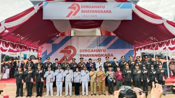 Muarasultra.com, KONAWE — Pemerintah daerah (Pemda) Kabupaten Konawe bersama jajaran Polres Konawe menggelar upacara hari Bhayangkara yang ke 79 di lapangan Pemda Konawe, Selasa (1/7/2025).