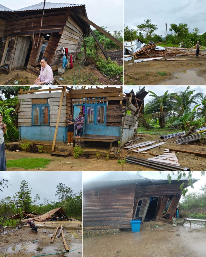 Dalam beberapa video yang di terima telisik.id memperlihatkan rumah-rumah warga serta pepohonan yang roboh akibat angin puting beliung ini.