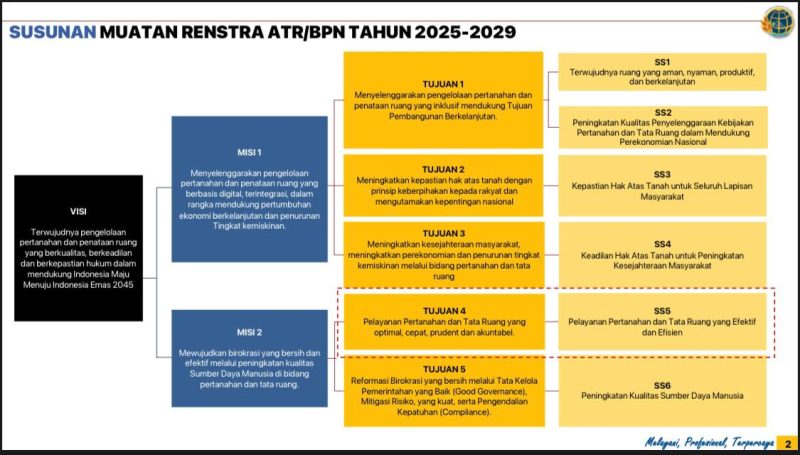 Ia mengajak seluruh jajaran untuk menanggapi setiap kehadiran masyarakat dengan kesungguhan dan rasa tanggung jawab. “Jangan sampai kita hanya melihat _casing_-nya saja. Kita lihat bahwa masyarakat yang datang pasti memiliki kepentingan dengan Teman-teman yang ada di ATR/BPN,” tutur Pudji Prasetijanto Hadi.