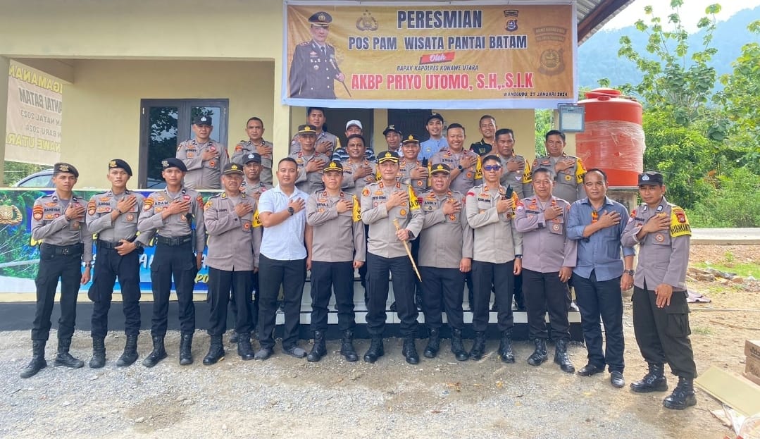 Muarasultra.com, KONAWE UTARA – Kepala Kepolisian Resor Konawe Utara AKBP Priyo Utomo, S.H., S.I.K meresmikan secara langsung penggunaan Pos Pengamanan (Pospam) Wisata Pantai Bandaeha-Mataiwoi (Batam) bertempat di Desa Mataiwoi Kecamatan Molawe Kabupaten Konawe Utara, Sabtu (27/1/24) sekira pukul 14.00 wita