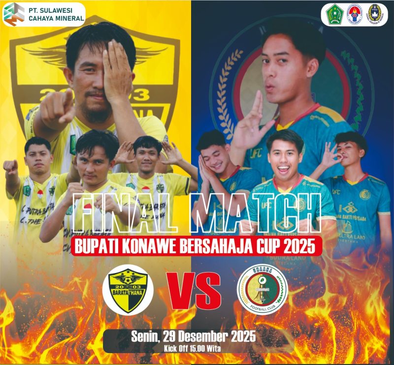 Dua tim yang akan berlaga yakni UNAAHA FC versus BARATA IHANA FC sore nanti Senin (29/12/2025), kick-off pukul 15.00 Wita.