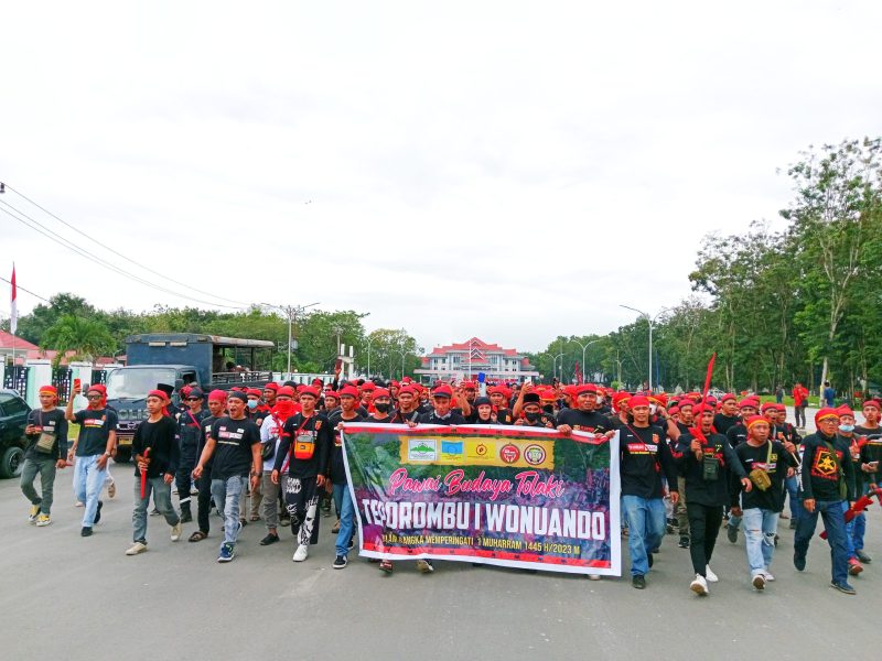 Muarasultra.com, KONAWE – Sambut tahun baru islam 1 Muharram 1445 hijriah, ratusan pengurus dan kader organisasi masyarakat atau Ormas adat Tolaki yang ada di Kabupaten Konawe menggelar kegiatan pawai budaya.