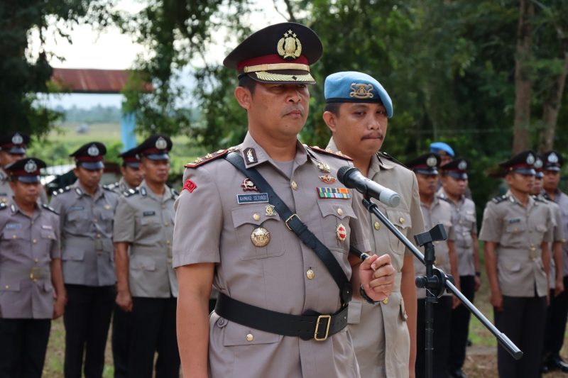 Peserta upacara terdiri dari satu kelompok barisan perwira, satu pleton barisan Dalmas ,satu pleton barisan Intel Reskrim, satu pleton barisan stap dan Polsek, satu pleton barisan Sat Lantas dan satu kelompok barisan Bhayangkari.
