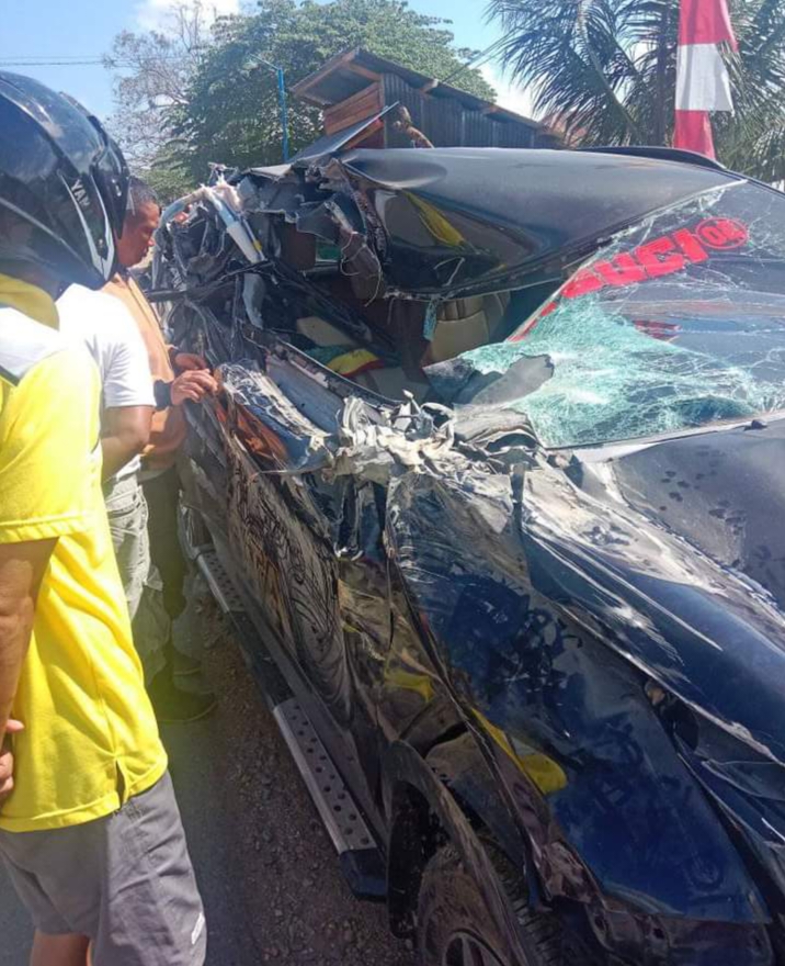 Kondisi Minibus usai alami kecelakaan di Wonggeduku, Kabupaten Konawe, Sulawesi Tenggara.