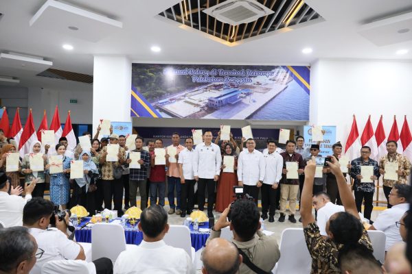 Muarasultra.com, Palu – Menteri Koordinator Bidang Infrastruktur dan Pembangunan Kewilayahan (Menko IPK), Agus Harimurti Yudhoyono (AHY), bersama Wakil Menteri Agraria dan Tata Ruang/Wakil Kepala Badan Pertanahan Nasional (Wamen ATR/Waka BPN), Ossy Dermawan, menyerahkan 160 sertipikat tanah kepada pemerintah daerah (Pemda) dan masyarakat Sulawesi Tengah (Sulteng), Rabu (09/07/2025). Penyerahan sertipikat ini merupakan bagian dari upaya pemerintah memberikan kepastian hukum atas tanah-tanah di penjuru Indonesia.