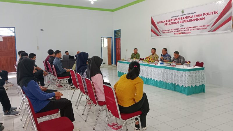 Muarasultra.com, KONAWE – Pemerintah Kabupaten Konawe melalui badan kesatuan bangsa dan politik (Kesbangpol) Kabupaten Konawe menggelar pelatihan kepemimpinan bagi generasi milenial (Gen Z). Kamis (12/9/2024).