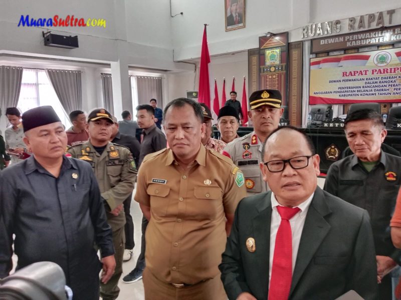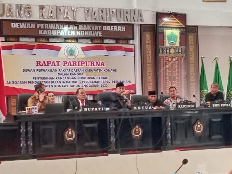 Disaat yang sama DPRD Kabupaten Konawe sedang menggelar rapat paripurna penyerahan rancangan peraturan daerah (Raperda) Anggaran pendapatan belanja daerah (APBD-Perubahan) bersama PJ Bupati Konawe Harmin Ramba, Unsur Forkopimda dan pimpinan OPD Kabupaten Konawe.