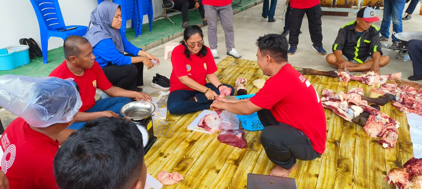 Bahkan suatu waktu saat kegiatan pemotongan dan pembagian daging sapi dan sembako terhadap masyarakat sekitar, Capt. Kristina Anthon memimpin langsung kegiatan tersebut.