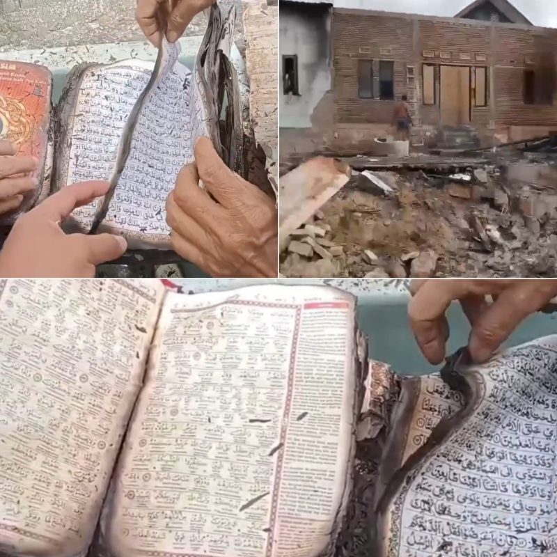 Namun, dalam insiden ini Subhanallah, 2 buah Al-Qur’an milik korban kebakaran justru tetap utuh. Allah akbar.