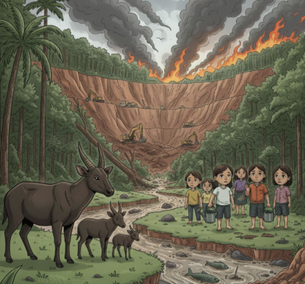 Habitat Anoa Hilang, Keanekaragaman Hayati Rusak. Anoa, merupakan simbol kebanggaan Sulawesi Tenggara. Namun, tempat tinggal satwa ini perlahan direnggut oleh aktivitas pertambangan. Berdasarkan laporan WWF Indonesia pada November 2025, jumlah populasi anoa telah menyusut sekitar 20% sejak tahun 2023, dengan penurunan terbesar terjadi di kawasan sekitar tambang Konawe Utara.