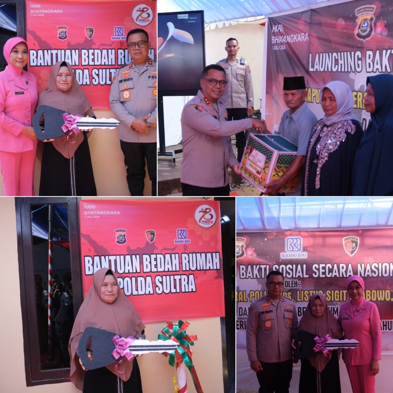 Di tahun ini polda sultra melakukan 3 bedah rumah, memberikan 8 ribu paket sembako, membangun fasilitas air bersih dan bakti religi dirumah-rumah ibadah di seluruh Sulawesi Tenggara.