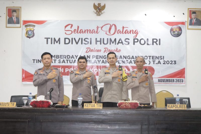 Muarasultra.com, Konawe Selatan– Tim Divisi Humas Mabes Polri melakukan kunjungan ke Polres Konawe Selatan dalam rangka Pemberdayaan Pengembangan Potensi Tingkat Satuan Wilayah (PENSATWIL) T.A 2023 , Kamis ( 16 / 11 / 2023 ).