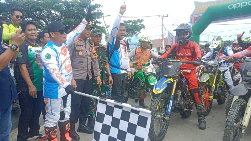 Setalah melepas ratusan raider Penjabat Bupati Konawe Harmin Ramba yang biasa di sapa HR pun juga ikut mengendarai motor Cross yang siap menjelajah medan terjal dimana rutenya telah disampaikan oleh Pantia.