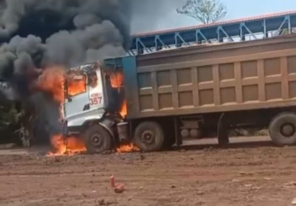 Muarasultra.com, KONAWE – Sebuah truk pengangkut batu bara milik PT Virtue Dragon Nickel industry (VDNi) dilalap api saat melintas dari arah jetty menuju kawasan perusahaan di Desa Puuruy, Kecamatan Bondoala, Kabupaten Konawe, Sulawesi Tenggara (Sultra), Selasa (23/12/2025) sekitar pukul 12.30 WITA.