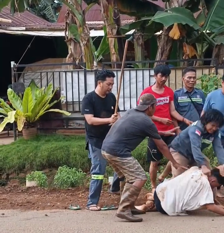 Untungnya, ada salah satu warga yang melerai, sehingga aksi pengeroyokan tersebut terhenti.