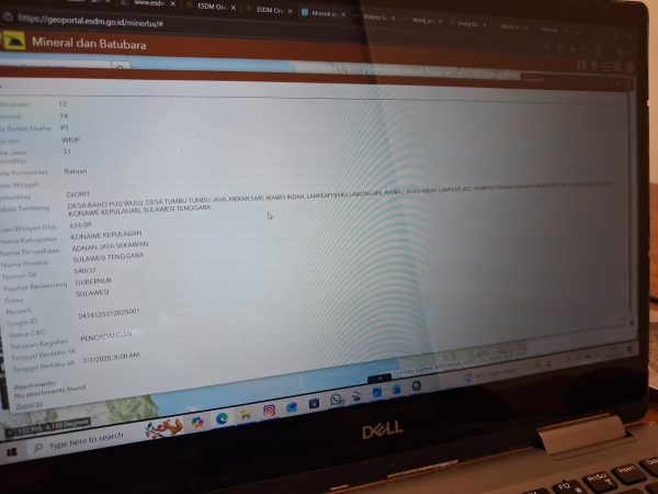 Muarasultra.com, KONAWE KEPULAUAN – Pemerintah Kabupaten Konawe Kepulauan (Pemkab Konkep) membantah telah mengeluarkan Persetujuan Kesesuaian Kegiatan Pemanfaatan Ruang (PKKPR) yang menjadi dasar penerbitan Wilayah Izin Usaha Pertambangan (WIUP) PT Adnan Jaya Sekawan (AJS).