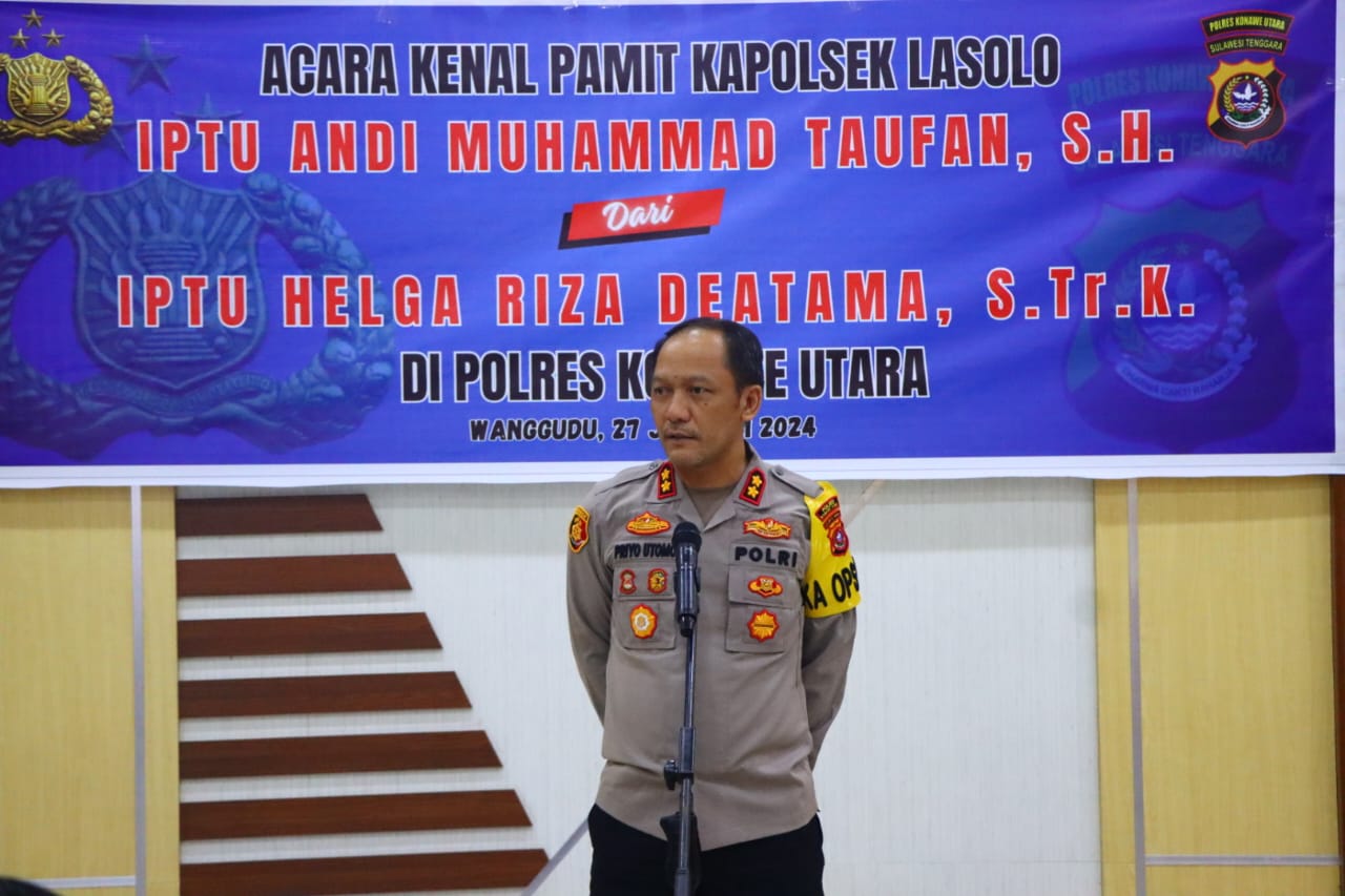 Muarasultra.com, KONAWE UTARA – Kepala Kepolisian Resor Konawe Utara AKBP Priyo Utomo, S.H., S.I.K memimpin kegiatan Kenal dan Pamit Kapolsek Lasolo bertempat di Aula Sanika Satyawada Polres Konawe Utara, 27/1/24) pukul 11.00 wita.