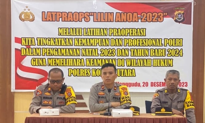 Setelah melaksanakan Apel gelar pasukan Polres Konawe utara melaksanakan Latihan Praoperasi Lilin Anoa 2023 dengan tema “Melalui latihan praoperasi kita tingkatkan kemampuan dan profesional Polri dalam rangka Pengamanan Nataru 2024 guna memelihara Kamtibmas diwilayah Hukum Polres Konut”